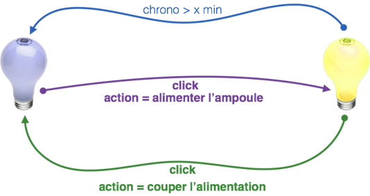 - Pour passer d’un état à l’autre, on appuie sur un bouton.