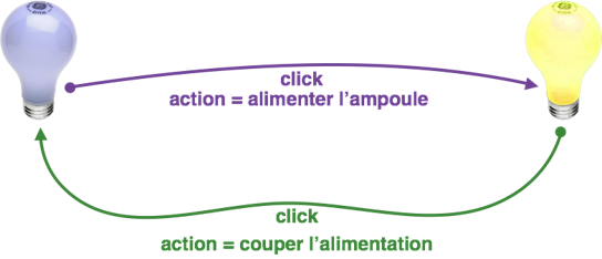 - Pensez à une ampoule qui peut avoir 2 états: allumée ou éteinte.